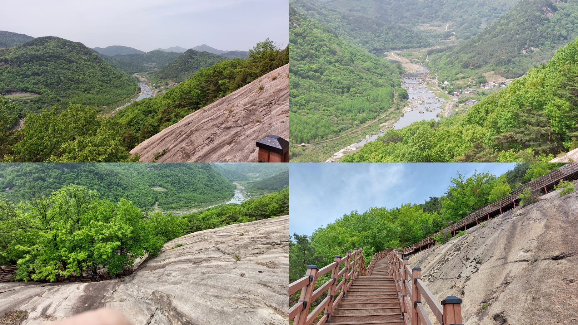 하지만 결과적으로 용궐산 하늘길은 후회없는 산행이었다. 하늘길까지만 간다면 등산이라고 하기에는 산책수준이고 산책이라고 너무 만만해 하면 곤란할 수도 있는 길이다. 주차장에서 잔도로 가는 길은 처음에는 돌계단으로 이어지다가 데크길이 되고 데크길 끝에서 다시 주차장으로 내려오는 길이 있는데 이 길은 말하자면 등산길이다. 노인이나 어린아이가 가기에는 좀 부적절하다. 해서 하늘길을 보고 거꾸로 내려오는 사람들이 많았다.