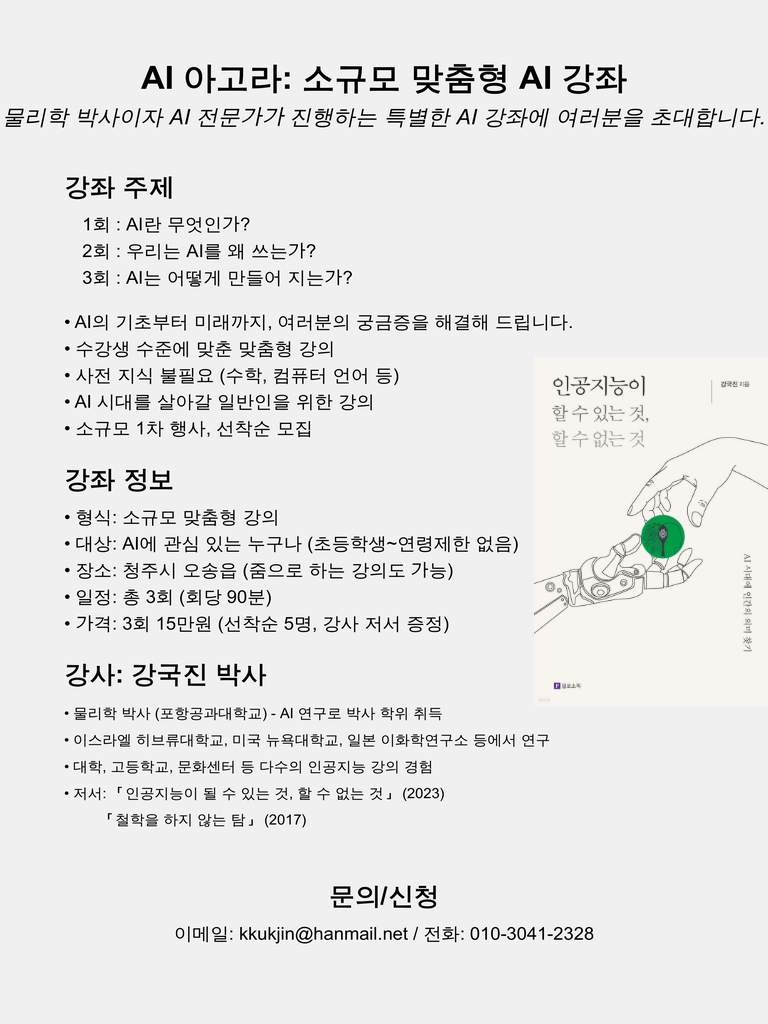 AI 아고라의 첫번째 강의를 시작합니다. 관심있으신 분들은 참고하시기 바랍니다.