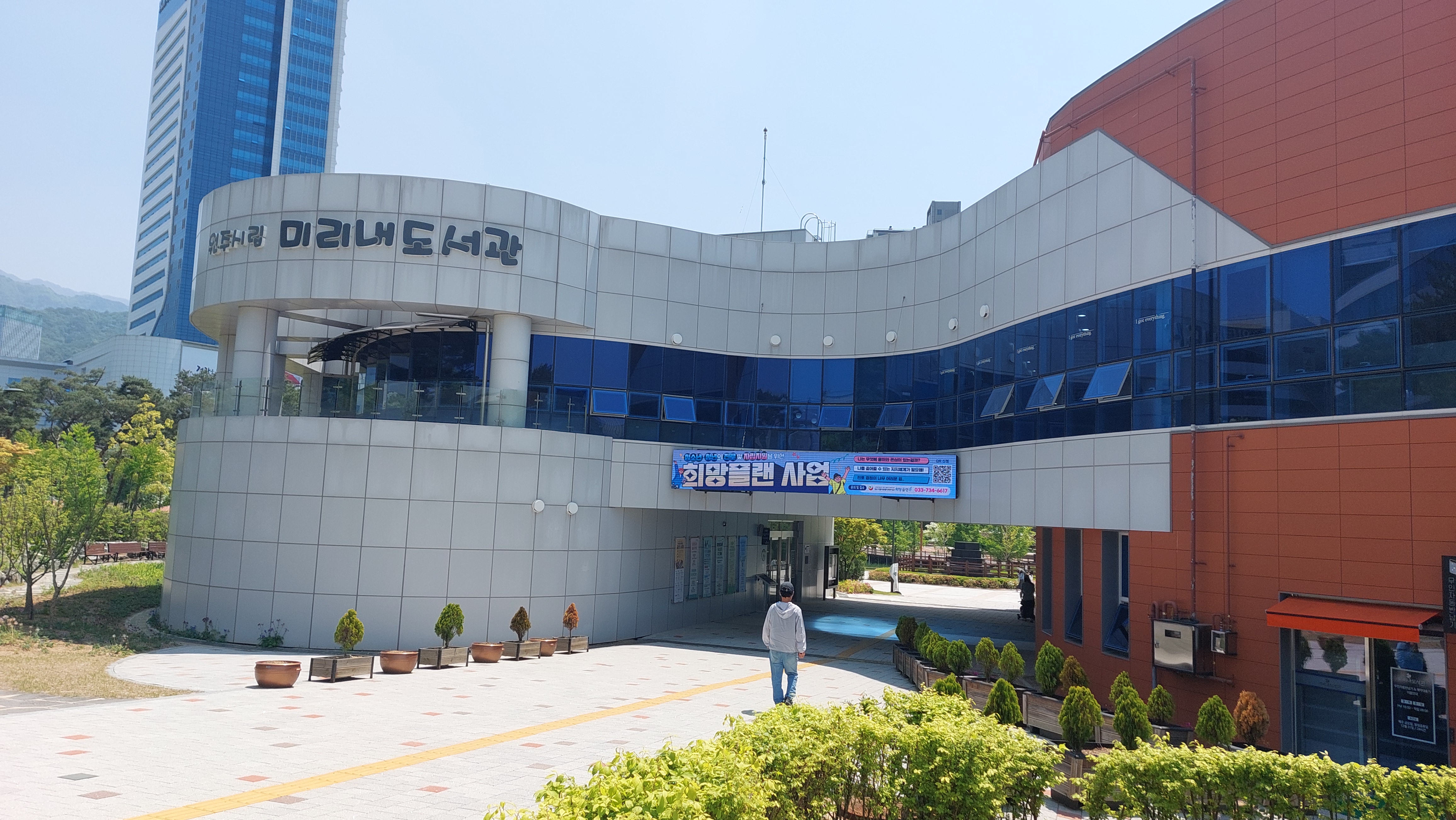 원주의 미리내 도서관에 도착하니 감탄이 나온다. 미리내 도서관은 그 앞쪽의 멋진 공원을 가지고 있을 뿐만 아니라 건물도 아주 멋지게 생겼다. 도서관을 보면 책읽는 사람을 얼마나 소중히 여기는가가 보인다. 그래서 전주의 도서관과 강릉의 도서관이 매우 차이가 난다는 사실이 나에게는 의미있게 보인다. 그런데 미리내 도서관은 어느 도서관에 뒤지지 않게 아주 멋지다. 원주는 장일순으로 한포인트를 얻었는데 도서관으로도 한포인트를 얻는다.