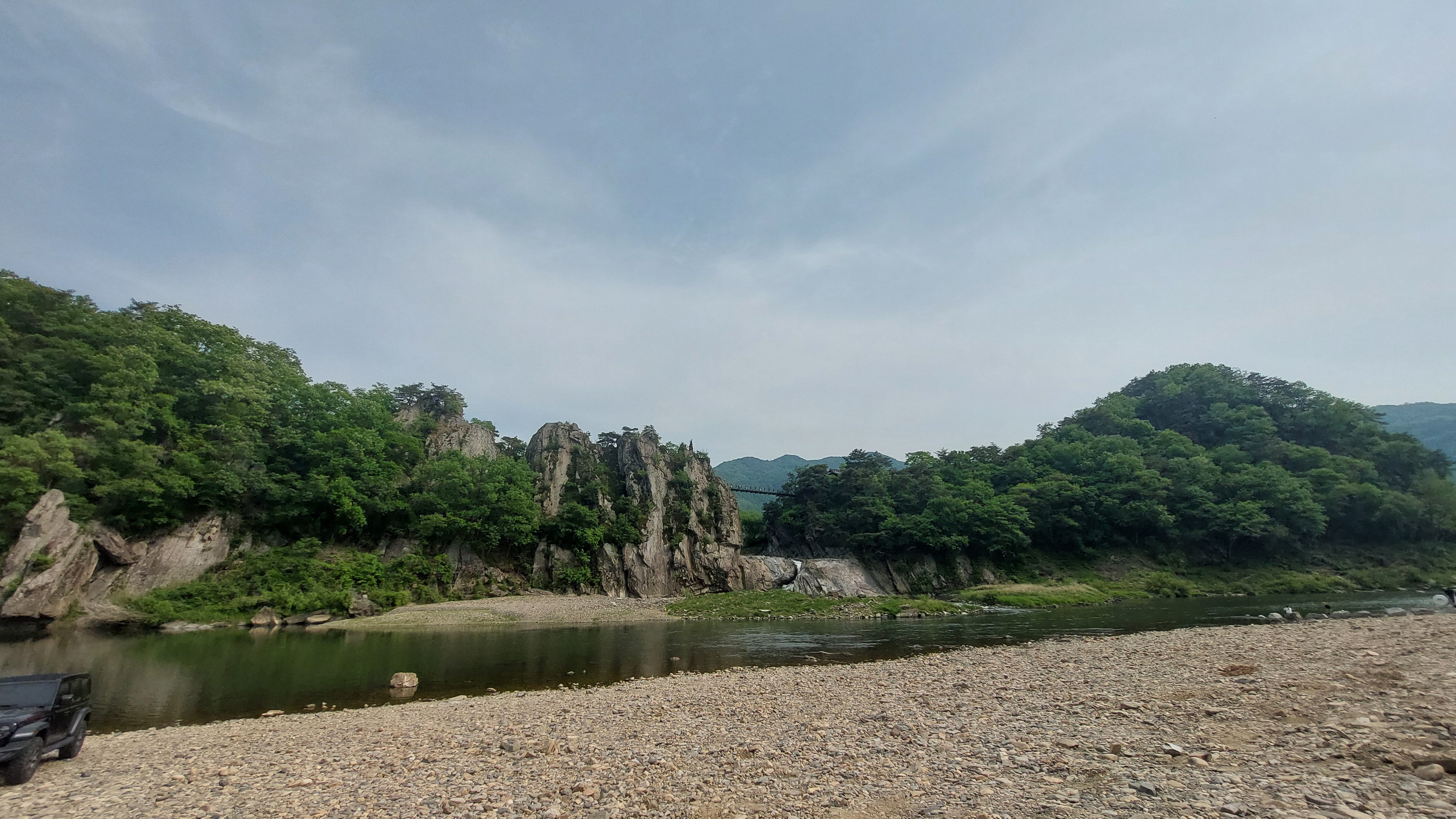 도착해보니 평일인데도 수주팔봉 야영지에는 많은 차들이 캠핑을 하고 있었다. 차를 대고 주변을 걸으면서 사진을 찍었다. 그러니까 이게 수주팔봉이로군하는 생각이 들었다. 멋진 곳이다. 다만 이번 여행의 주제는 번잡한 것보다는 좀 조용한 걸 추구하는 것이라 이 차들이 하나도 없고 이 자갈밭에 나혼자 있다면 정말 멋진 곳이 될거라는 생각이 없어지지 않았다. 물론 내 욕심이다.