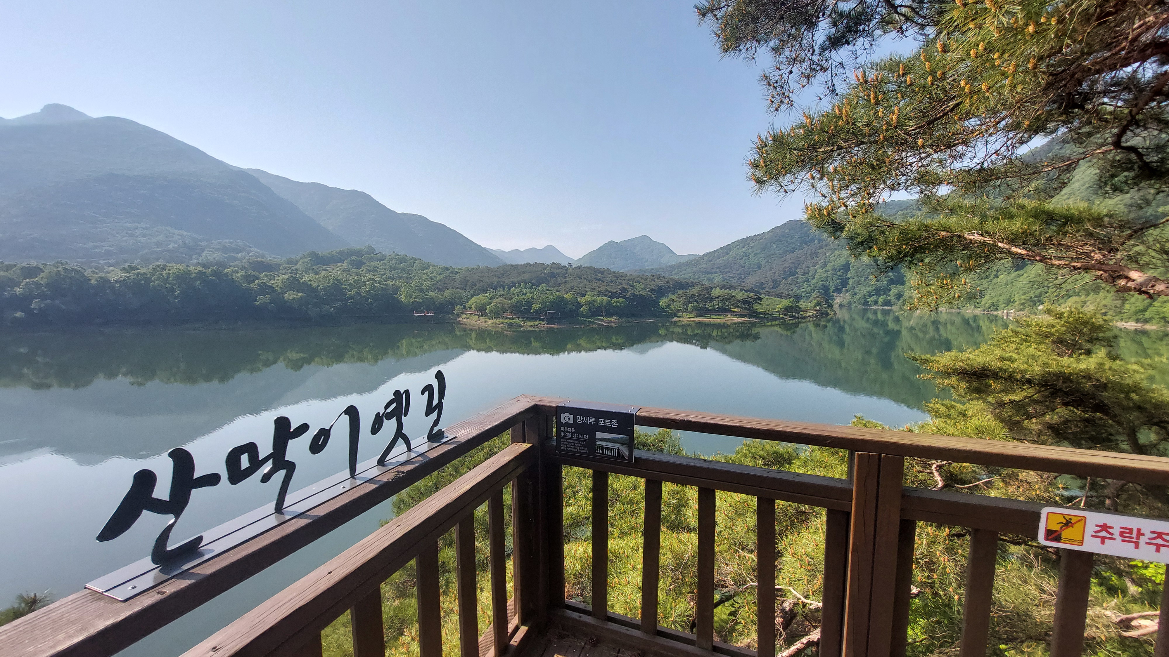 수주팔봉에서의 밤을 보내고 아침 6시에 눈을 떴다. 요즘은 아침 산책을 하는 것이 일과다. 그건 바로 아침 산책을 하면 그 길에 사람이 없기 때문이다. 멋진 경치속에서 홀로 있는 것은 굉장히 감동적이다. 그래서 나는 화장실에서 아침 세수와 면도를 하고 좋았지만 차들이 많은 수주팔봉을 떠나서 괴산 산막이옛길로 향했다. 이 길은 전체 길이가 왕복 7km정도 되는 길이다. 산막이길 입구부터 산막이 나루터까지의 길이 그정도다. 하지만 오르막 내리막이 많은 길이라서 약간은 등산하는 느낌이 들고 따라서 생각보다 길게 느껴진다. 나는 중간에 사진도 찍고 물멍시간도 가지면서 두 시간에 이 길을 걸었다.